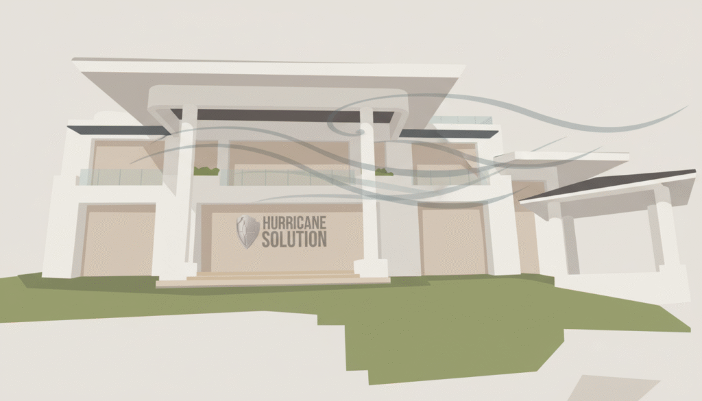 La protección más efectiva para estas áreas son las cortinas anticiclónicas enrollables de Hurricane Solution. Estas protecciones cubren superficies amplias y resisten la presión extrema de huracanes categoría 4 y 5. Se despliegan rápidamente, se tensan mediante clips categoría 5 y anclajes de acero inoxidable, y ofrecen una barrera flexible que absorbe impactos sin romperse.