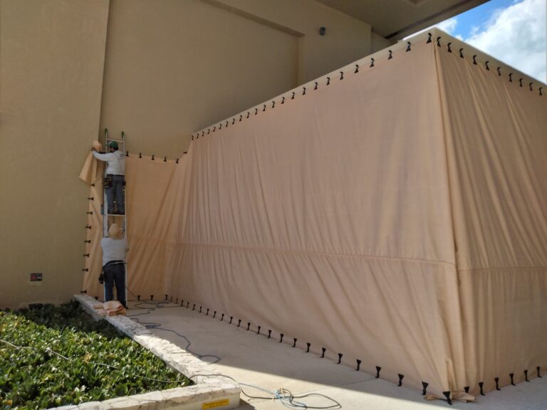 Material de nylon diseñado para fachadas y espacios mayores a 30 m². Permite el paso de aire y agua, reduciendo la presión. Anclajes fabricados de acero inoxidable. Ideal para edificios y agencias.
